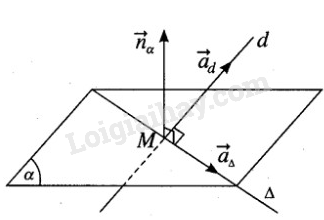 – Đường thẳng \(\Delta \) vuông góc với \(d\) và nằm trong \(\left( \alpha  \right)\) \( \Rightarrow \overrightarrow {{u_\Delta }}  = \left[ {\overrightarrow {{u_d}} ,\overrightarrow {{n_{\left( \alpha  \right)}}} } \right]\)