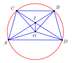 Cho đường tròn (O). Bốn điểm A, B, C, D nằm trên đường tròn theo thứ tự chiều quay kim đồng hồ, sao cho AB = CD, AB và CD cắt nhau tại I.