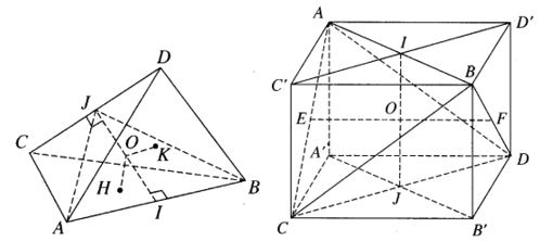 Gọi H và K theo thứ tự là chân đường vuông góc kẻ từ O đến (ABC) và (ABD). Vì OA = OB = OC nên HA = HB = HC, tương tự KA = KB = KD. Vì ΔABD = ΔBAC nên HA = KA. Do đó OH = OK. Tương tự, ta chứng minh được khoảng cách từ O đến các mặt của tứ diện ABCD bằng nhau nên O cũng là tâm của mặt cầu nội tiếp tứ diện ABCD.