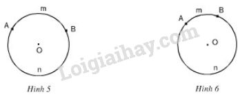 Trên các hình 5, 6, hãy dùng dụng cụ đo góc để tìm số đo cung \(\overparen{AmB}\). Từ đó tính số đo cung \(\overparen{AnB}\) tương ứng.