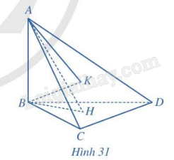 Cho tứ diện ABCD có \(AB \bot (BCD)\), các tam giác BCD và ACD là những tam giác nhọn. Gọi H, K lần lượt là trực tâm của các tam giác BCD, ACD (Hình 31). Chứng minh rằng:
