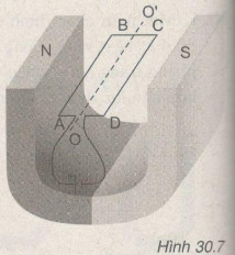 Một khung dây dẫn hình chữ nhật ABCD có dòng điện một chiều chạy qua như hình 30.7 đặt trong từ trường của một nam châm hình chữ U. Lúc đầu đặt khung ở vị trí nào thì khung không quay được? Vì sao?