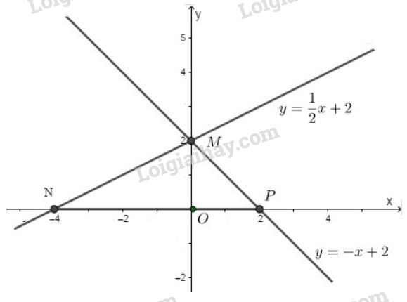 Cho \(y=0 \Rightarrow 0=\dfrac{1}{2}.x + 2 \Rightarrow x=-4 \Rightarrow N(-4; 0)\).