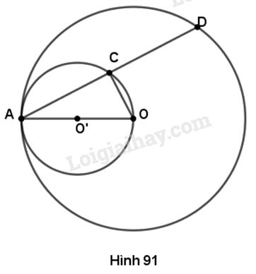 a) Gọi \(O’\) là trung điểm của \(OA.\) Đường tròn \(\left( O \right)\) có bán kính là \(OA,\) đường tròn \(\left( {O’} \right)\) có bán kính là \(O’A.\)