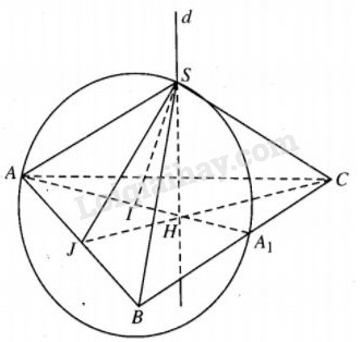 Gọi J là trung điểm của AB thì \(CJ \bot AB\), do\(SH \bot \left( {ABC} \right)\) nên \(SJ \bot AB.\)