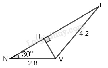Xét tam giác vuông \(NMH\) ta có: \(\sin 30^\circ  = \dfrac{{MH}}{{MN}}\)\(  \Rightarrow MH = \sin 30^\circ .MN = \sin 30^\circ .2,8=1,4\)