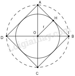 c) Kẻ \(OH \bot AB\). \(OH\) là bán kính \(r\) của đường tròn nội tiếp hình vuông \(ABCD.\)