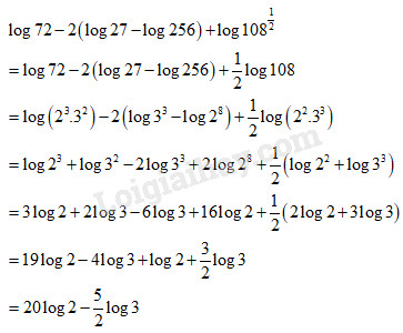\(\log 72 – 2\log {{27} \over {256}} + \log \sqrt {108} \)