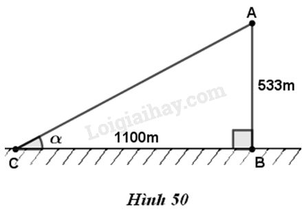 Trong hình \(50,\) góc \(\alpha \) là góc tạo bởi tia sáng mặt trời và mặt đất. Trong tam giác vuông \(ABC,\) ta có: