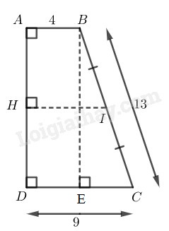 Cho hình thang vuông \(ABCD\) \((\widehat A = \widehat D = 90^\circ ),\) \(AB = 4cm,\) \(BC = 13cm,\) \(CD = 9cm.\)