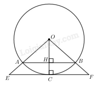 Gọi \(C\)  là tiếp điểm của \(EF\) với đường tròn \((O),\) \(H\) là giao điểm của \(OC\) và \(AB.\) Ta có