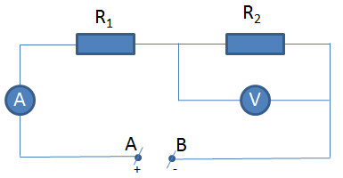 Cho mạch điện có sơ đổ như hình 4.2,trong đó điện trở R1 = 5Ω, R2 = 15Ω, vôn kế chỉ 3V