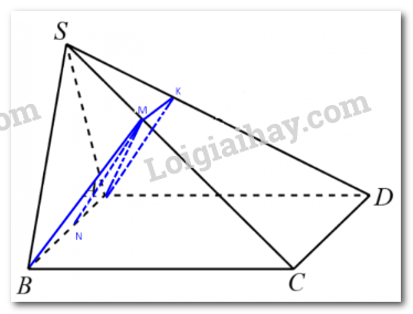 Xét tam giác SCD ta có: MK //CD suy ra \(\frac{{SK}}{{SD}} = \frac{{SM}}{{SC}} = \frac{1}{3}\)