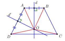 Gọi \(d\) là trục của hình thang cân \(ABCD\), \(d’\) là đường trung trực của cạnh bên \(AD\).