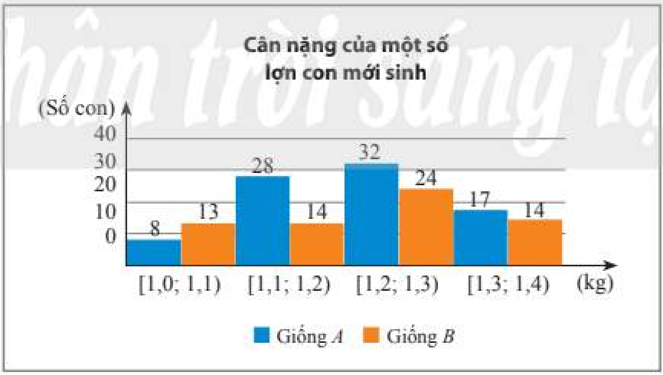 Cân nặng của một số lợn con mới sinh thuộc hai giống A và B được cho ở biểu đồ dưới đây (đơn vị: kg).