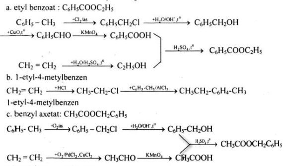 Hãy viết sơ đồ phản ứng từ etilen và toluen điều chế ra các hợp chất sau:
