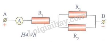b) Mắc lại mạch điện có sơ đồ như hình H4.7b. Khi này, số chỉ của ampe kế là bao nhiêu?