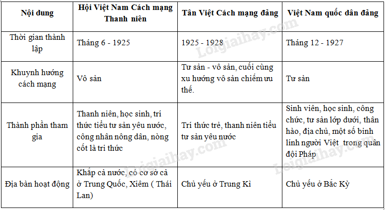 Hãy lập bảng hệ thống về các tổ chức cách mạng ở Việt Nam trong những năm 20 của thế kỉ XX theo gợi ý sau