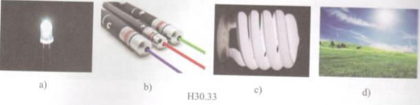Nguồn sáng nào sau đây là nguồn phát ánh sáng đơn sắc (hình H30.33) ?