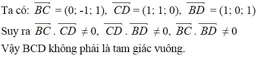 Dễ thấy điểm D không thuộc (ABC) nên bốn điểm A, B, C, D không đồng phẳng.