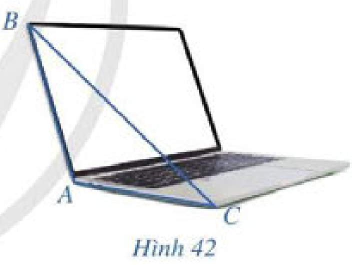 Trong Hình 42, máy tính xách tay đang mở gợi nên hình ảnh của một góc nhị diện. Ta gọi số đo góc nhị diện đó là độ mở của màn hình máy tính. Tính độ mở của màn hình máy tính theo đơn vị độ, biết tam giác \(ABC\) có độ dài các cạnh là \(AB = AC = 30{\rm{ }}cm\) và \(BC = 30\sqrt 3 {\rm{ }}cm\).