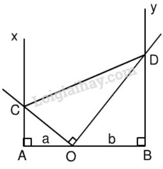 Qua \(A\) và \(B\) vẽ theo thứ tự các tia \(Ax\) và \(By\) cùng vuông góc với \(AB\) và cùng phía với \(AB\). Qua \(O\) vẽ hai tia vuông gaóc với nhau và cắt \(Ax\) ở \(C\), \(By\) ở \(D\) (xem hình 116).