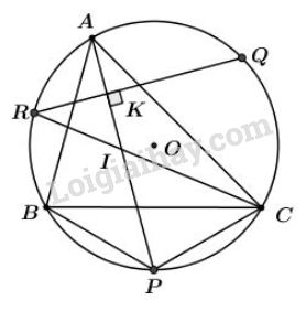 Cho tam giác \(ABC\) nội tiếp đường tròn. \(P,\, Q,\, R\) theo thứ tự là các điểm chính giữa các cung bị chắn \(BC, \, CA, \,AB\) bởi các góc \(A, \,B,\, C\).