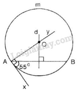 + Vẽ đường trung trực d của đoạn thẳng AB. Gọi \( O\) là giao của \( Ay\) với \(d\).