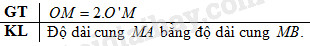 Theo giả thiết \(OM = 2O’M.\) Vậy các  cung \(MA\) và \(MB\) có độ dài bằng nhau.