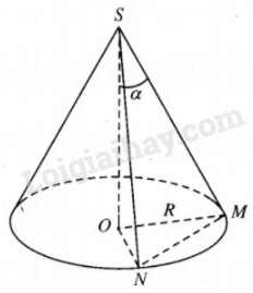 Cho hình nón đỉnh có bán kính đáy R, góc ở đỉnh là \(2\alpha ,\;{45^0} < \alpha  < {90^0}.\)