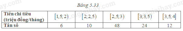 Bảng 5.33 biểu diễn kết quả tìm hiểu về chi tiêu hàng tháng cho nhà ở của công nhân làm việc trong một khi công nghiệp: