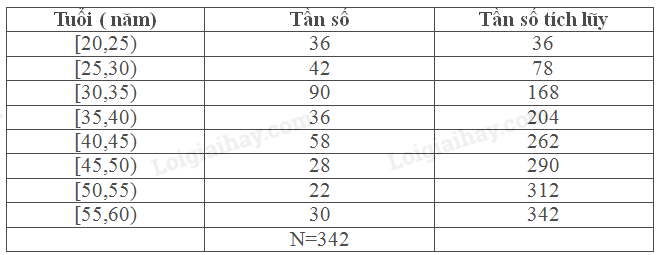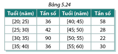 Tuổi của một số lao động nam được thống kê trong Bảng 5.24