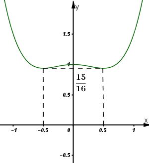 Hàm số đạt cực tiểu tại \(\displaystyle x =  \pm {1 \over 2}; \,{y_{CT}} = {{15} \over {16}}.\)