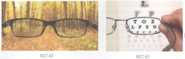 Để khắc phục được tật cận thị, mắt phải đeo kính thuộc loại nào? Hãy giải thích tại sao loại thấu kính này lại giúp được tật cận thị của mắt (hình minh họa H27.42, H27.43).
