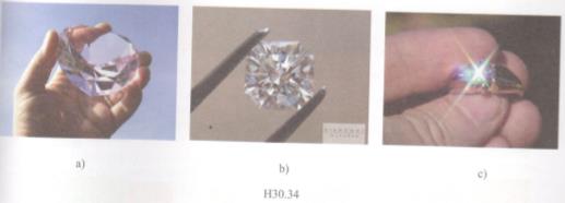 Khi nhìn vào một khối đá trong suốt đã được mài thành nhiều mặt nhẵn (hình H30.34), ta thấy có nhiều màu sắc khác nhau. Đó là do: