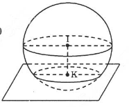 Tâm \(K\) của đường tròn \((C)\) là hình chiếu vuông góc của tâm \(I\) của mặt cầu trên mặt phẳng \((α)\).