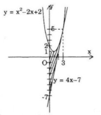 Parabol \(y = {x^2} – 2x + 2,\) tiếp tuyến của nó tại điểm \(M(3;5)\) và trục tung