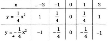 * Hàm số \(\displaystyle y = {1 \over 4}{x^2}\) và \(\displaystyle y =  – {1 \over 4}{x^2}\)