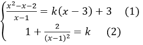 \Leftrightarrow \frac{{{x^2} – x – 2}}{{x – 1}} = \frac{{{{\left( {x – 1} \right)}^2} + 2}}{{{{\left( {x – 1} \right)}^2}}}\left( {x – 3} \right) + 3\\