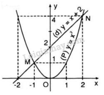 Vẽ hai đồ thị \(y = x^2\) và \(y = x + 2\) trên cùng một hệ trục tọa độ.