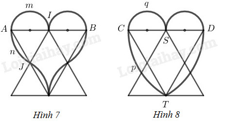 Các tam giác trong hai hình quả tim dưới đây \((h.7\) và \(h.8)\) đều là tam giác đều. Biết \(AB = CD = 8cm.\) Tính chu vi của mỗi hình quả tim.