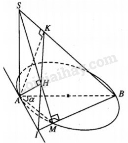Cho đường tròn đường kính AB 2R nằm trong mặt phẳng \(\left( P \right)\) và một điểm M nằm trên đường tròn đó sao cho \(\widehat {MAB} = \alpha \). Trên đường thẳng vuông góc với \(\left( P \right)\) tại A, lấy điểm S sao cho SA=h. Gọi H và K lần lượt là hình chiếu vuông góc của A trên SM và SB.