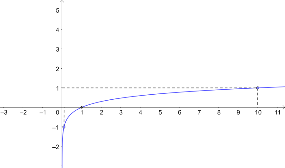 Từ đó, ta vẽ được đồ thị của hàm số \(y = \log x.\)