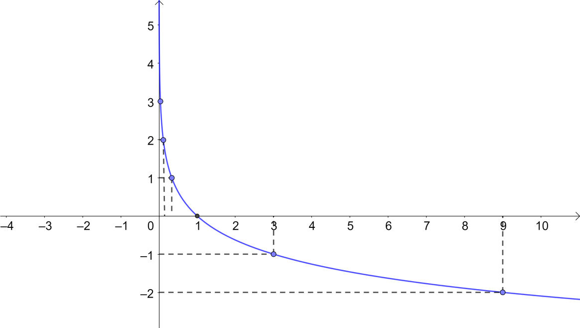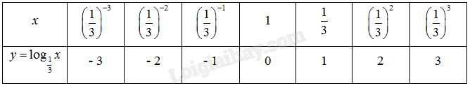 Từ đó, ta vẽ được đồ thị của hàm số \(y = {\log _{\frac{1}{3}}}x.\)