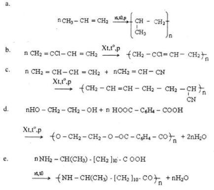 Viết phương trình phản ứng polime hóa các monome sau và cho biết chúng thuộc loại phản ứng trùng hợp hay trùng ngưng.