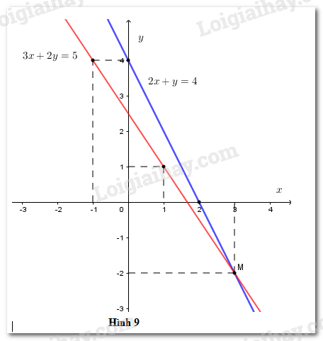 Thử lại, ta thấy  \(\left( {3; – 2} \right)\) nghiệm đúng phương trình \(2x + y = 4\) (vì \(2.3 + \left( { – 2} \right) = 4\)) và phương trình \(3x + 2y = 5\) (vì \(3.3 + 2\left( { – 2} \right) = 5\)).
