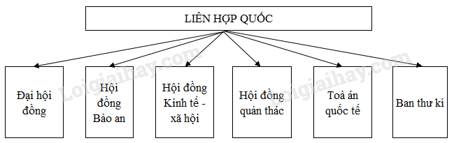 Giải bài 6 trang 4 tập bản đồ Sử 12. Vẽ sơ đồ 6 cơ quan chính của Liên hợp quốc