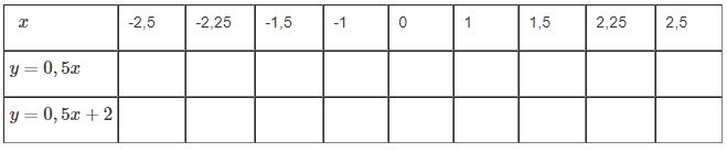 Cho các hàm số \(y = 0,5x\) và \(y = 0,5x + 2\)