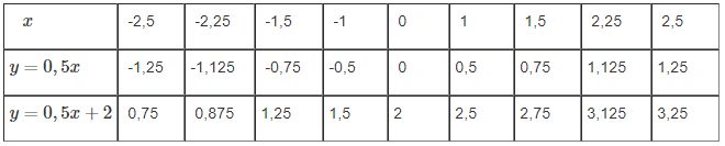 \(f(-2,5)=0,5.(-2,5)+2=-1,25+2=0,75\).