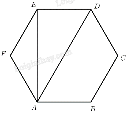 Một ô che nắng có viền khung hình lục giác đều \(ABCDEF\) song song với mặt bàn và có cạnh \(AB\) song song với cạnh bàn \(a\) (Hình 5). Tinh số đo góc hợp bởi đường thẳng \(a\) lần lượt với các đường thẳng \(AF,AE\) và \(A{\rm{D}}\).